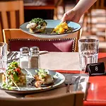 Snídaně se podává v restauraci každé ráno 04:00 do 12:00. Restaurace je otevřena od 19:00 do 21:00. Hosté najdou fast food restaurace McDonald's ve vzdálenosti 450 metrů od hotelu.